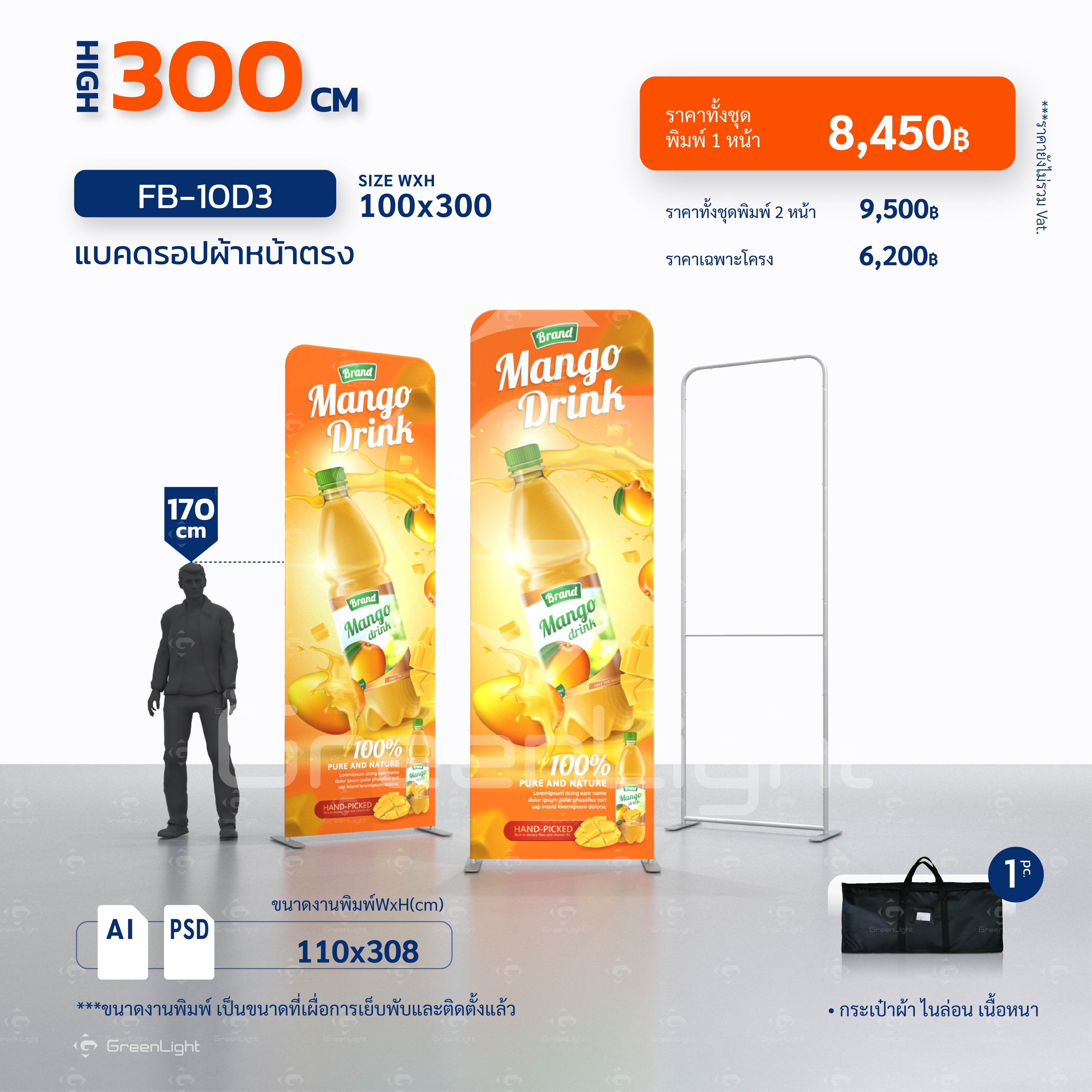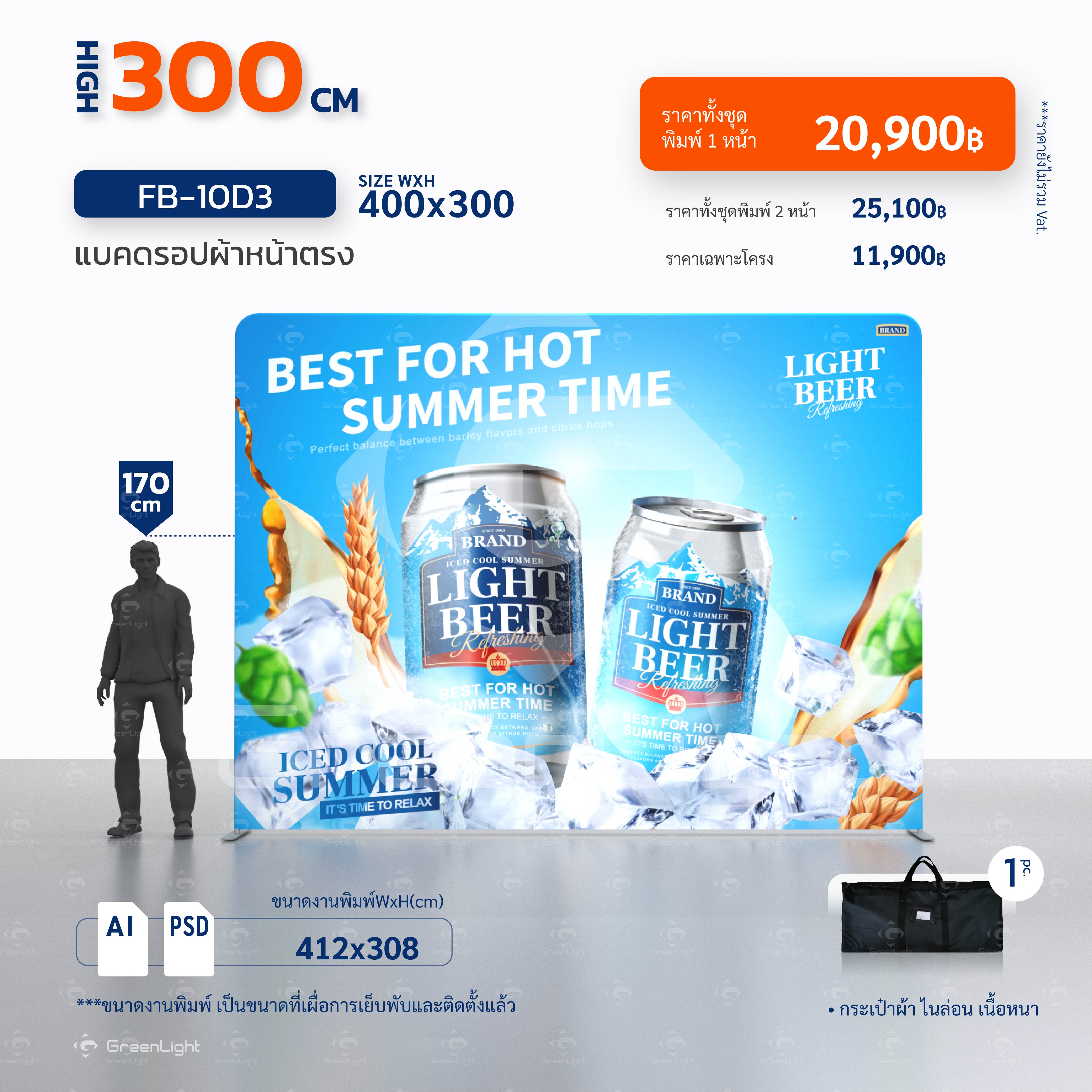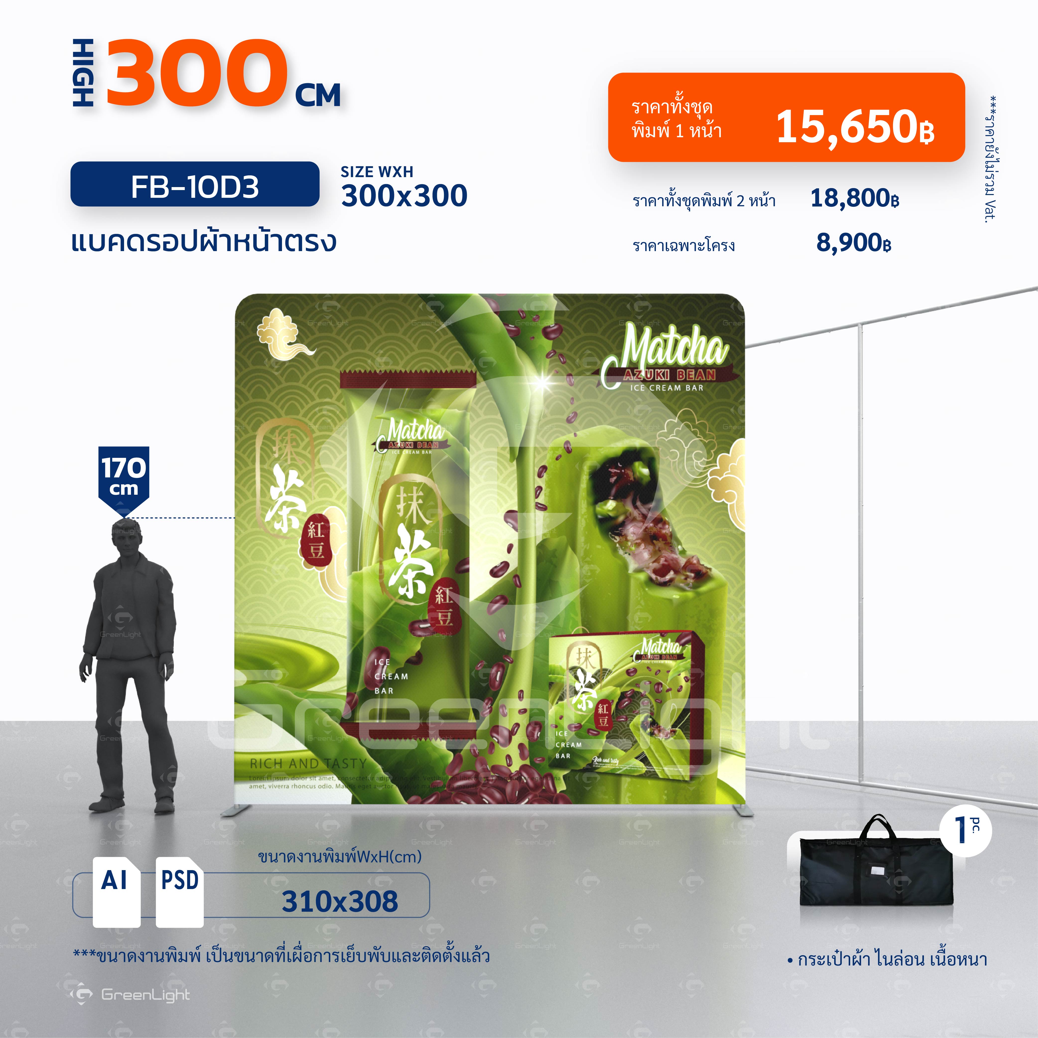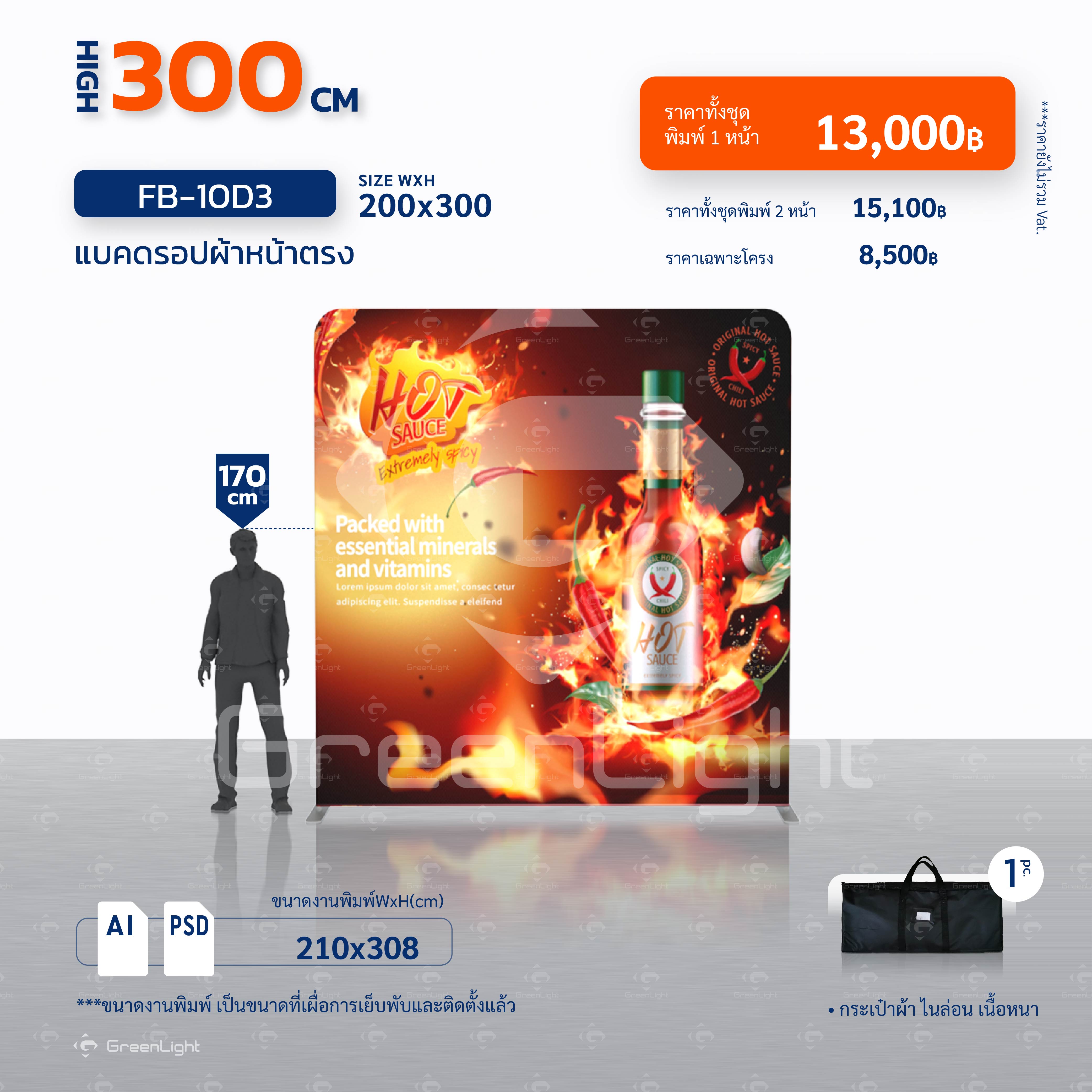 แบคดรอปผ้า หน้าตรง-Fabric Backdrop สูง 300cm (ไม่มีชุดไฟ)