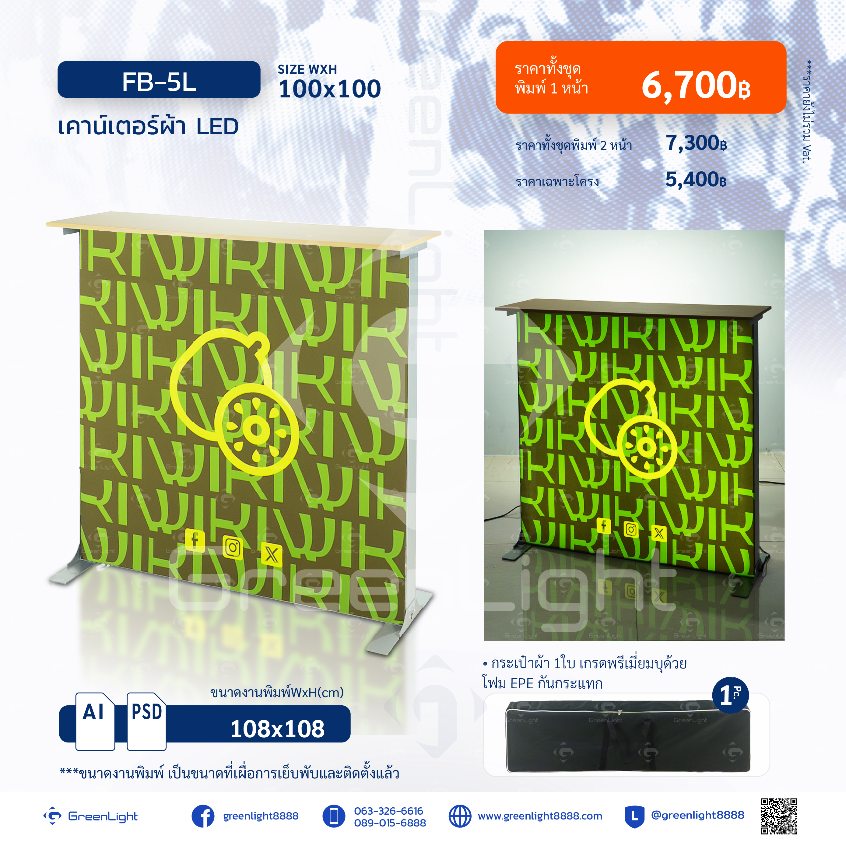 FB-5L ขนาด 100x100cm เคาน์เตอร์ผ้า LED